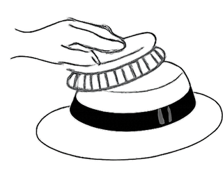 Rangez votre chapeau à plat ou sur un support afin qu’il conserve sa forme. Tenez-le à l’écart de l’humidité et de la chaleur.